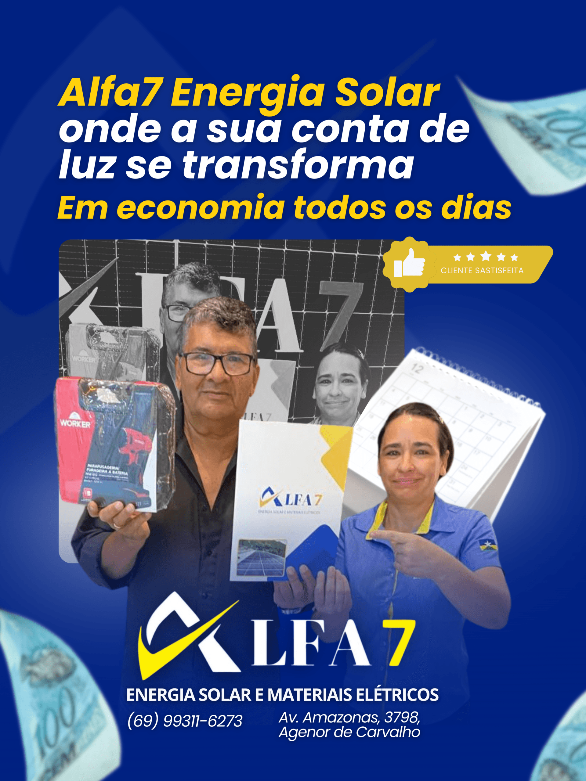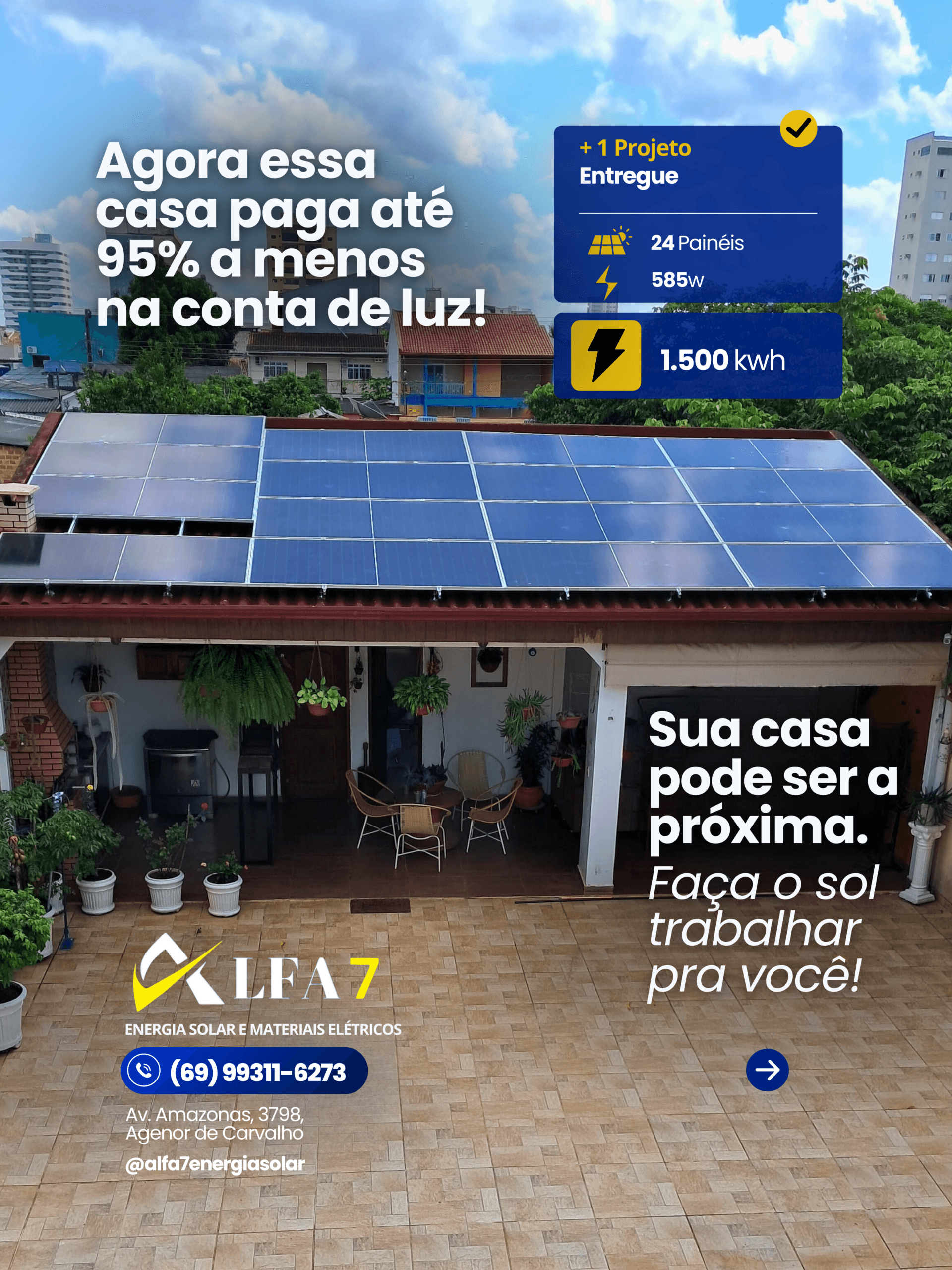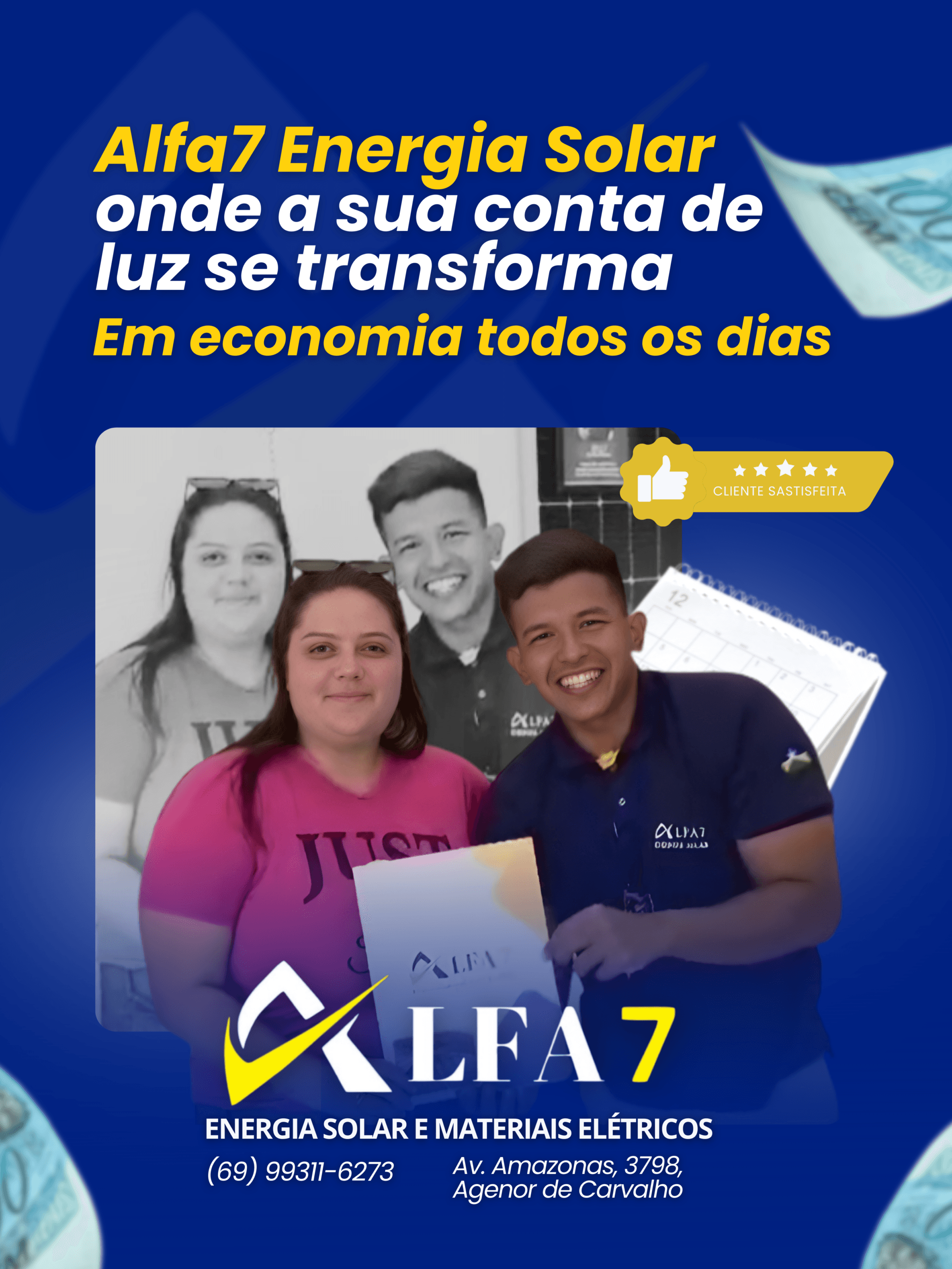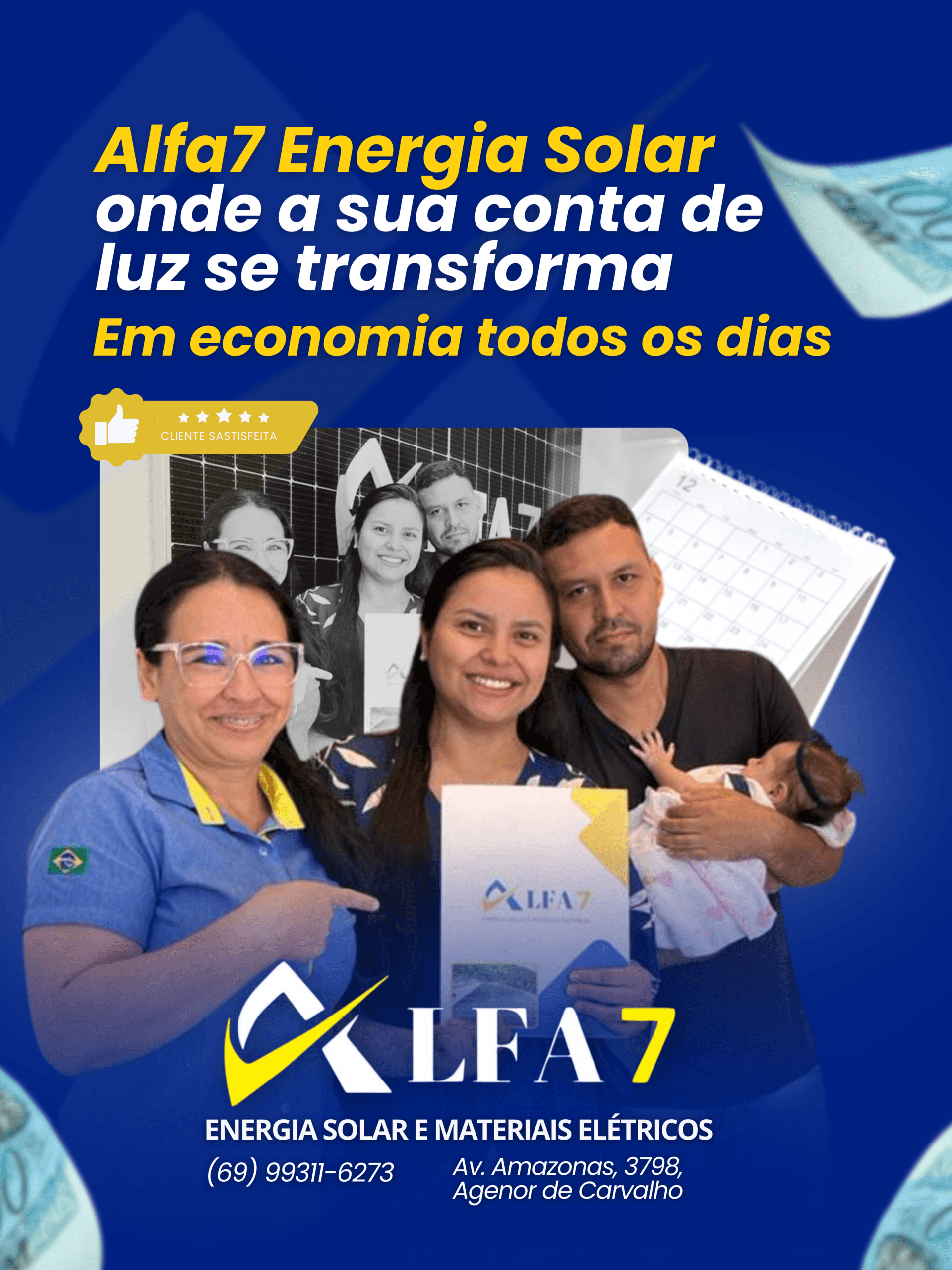 "Minha conta caiu de R$ 780 para menos de R$ 95. Equipe pontual, instalação em 2 dias. Recomendo demais a Alfa7!"