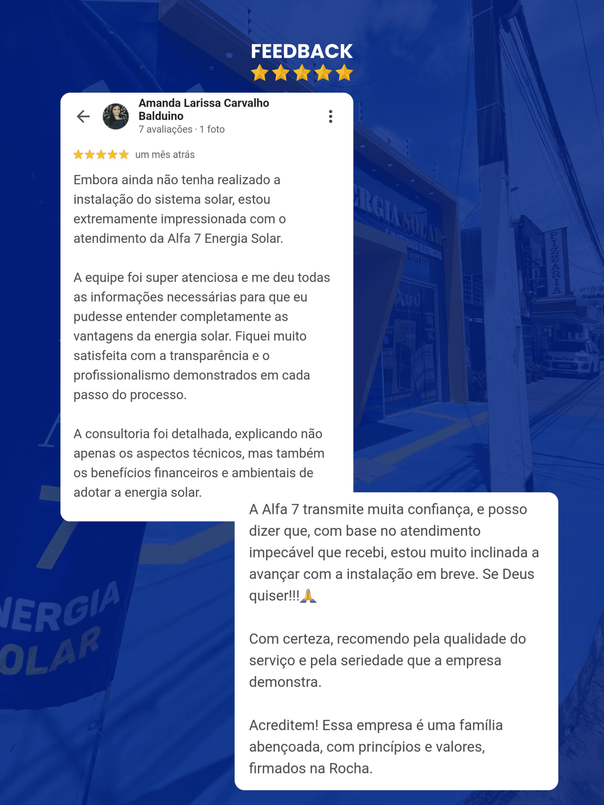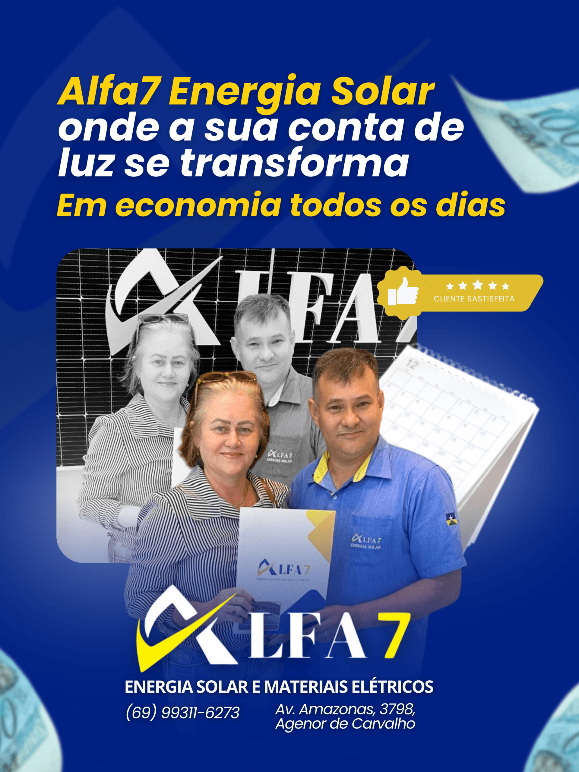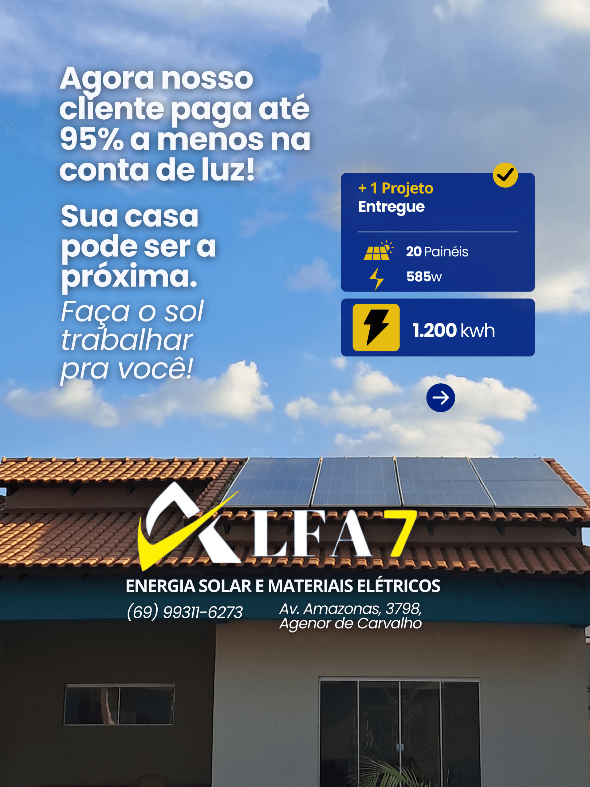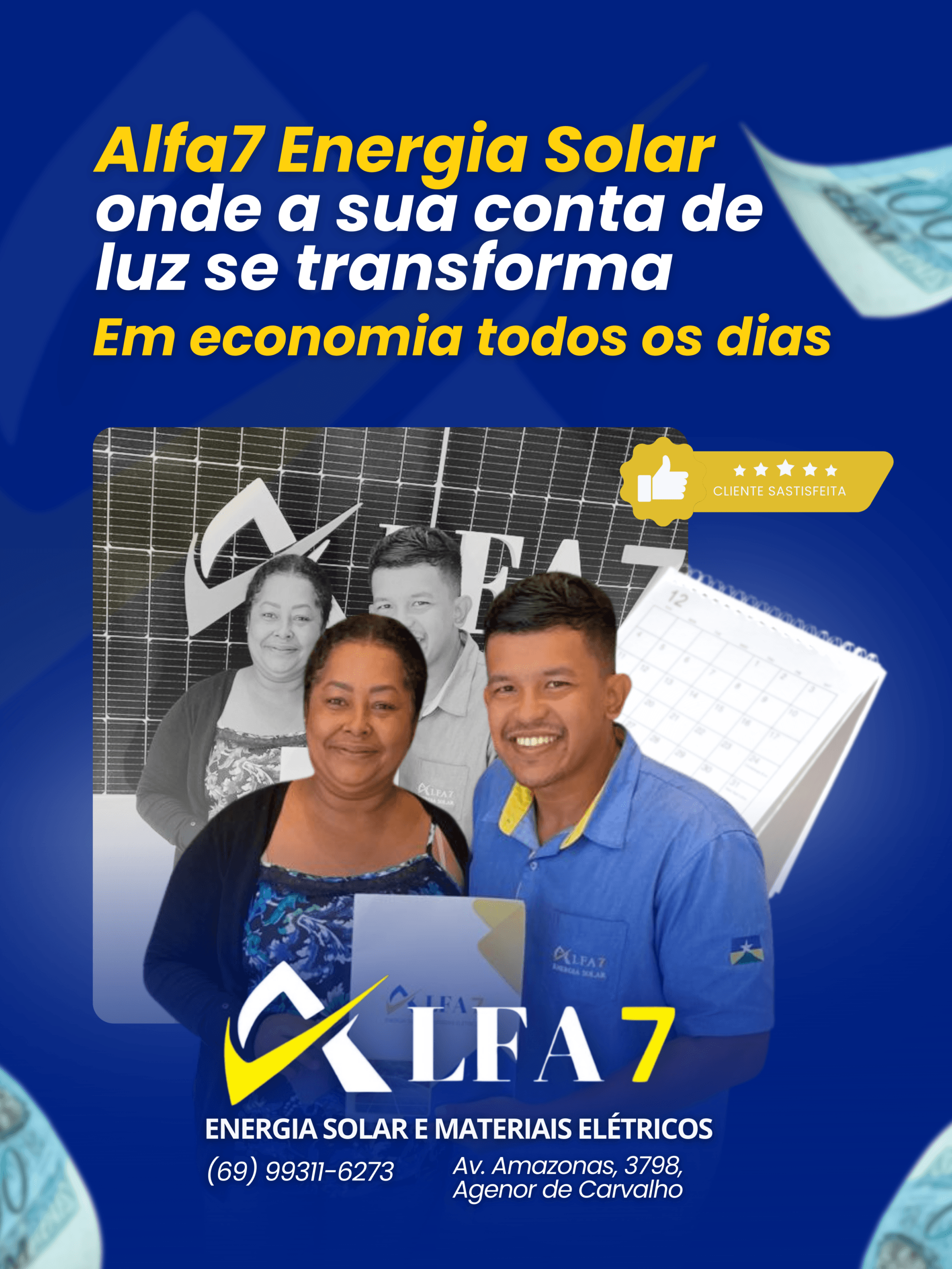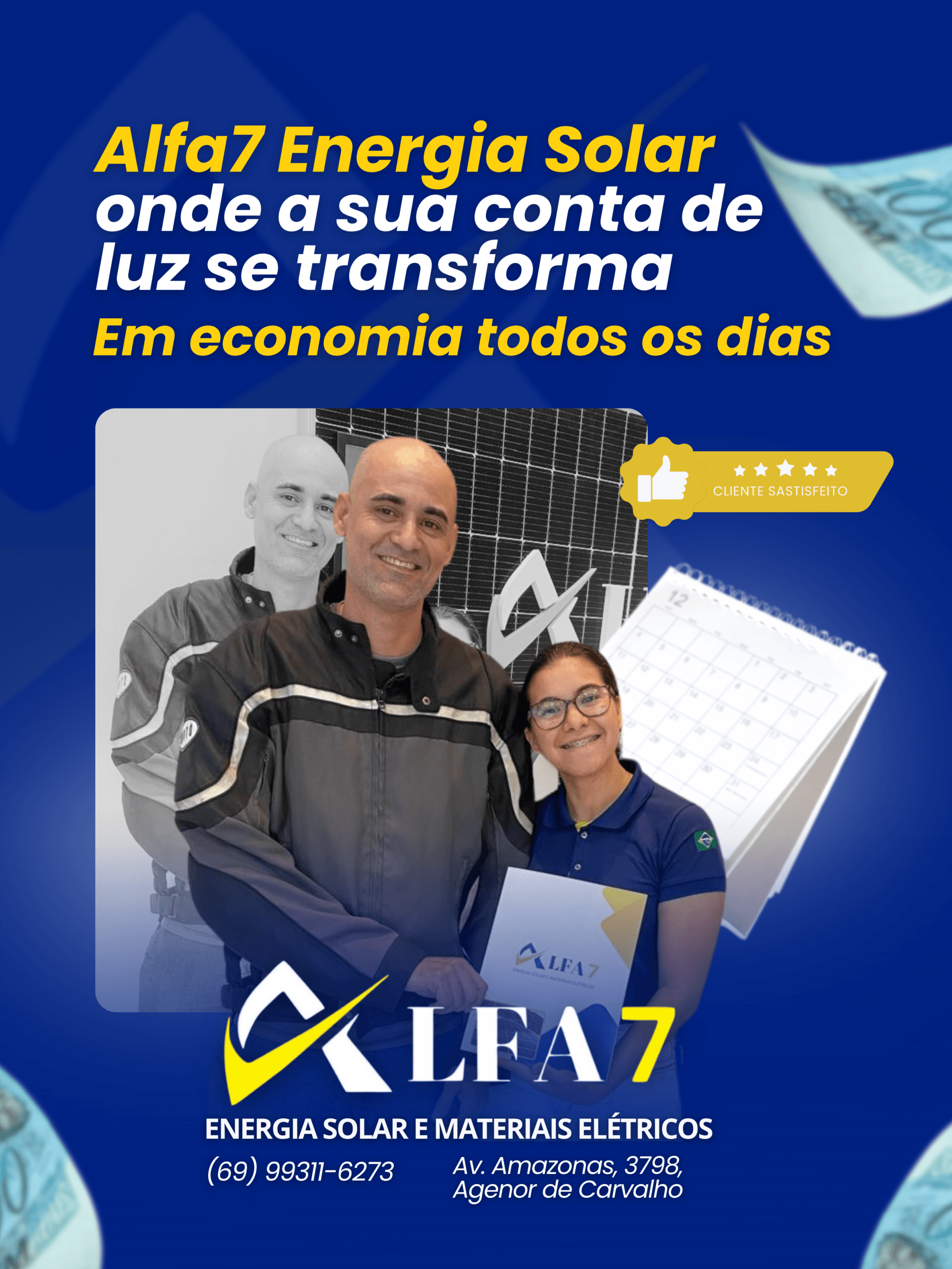 "Minha conta caiu de R$ 780 para menos de R$ 95. Equipe pontual, instalação em 2 dias. Recomendo demais a Alfa7!"
