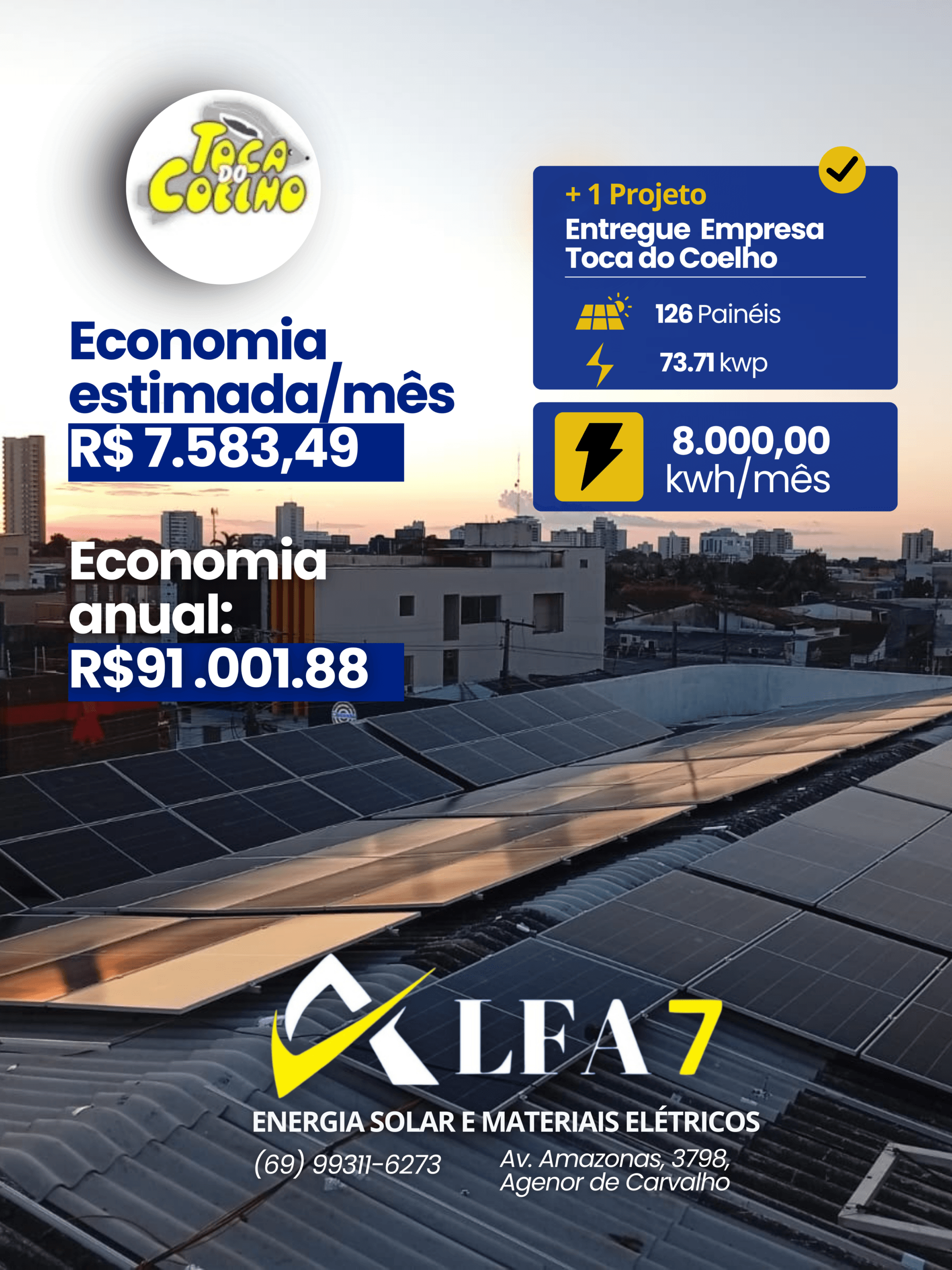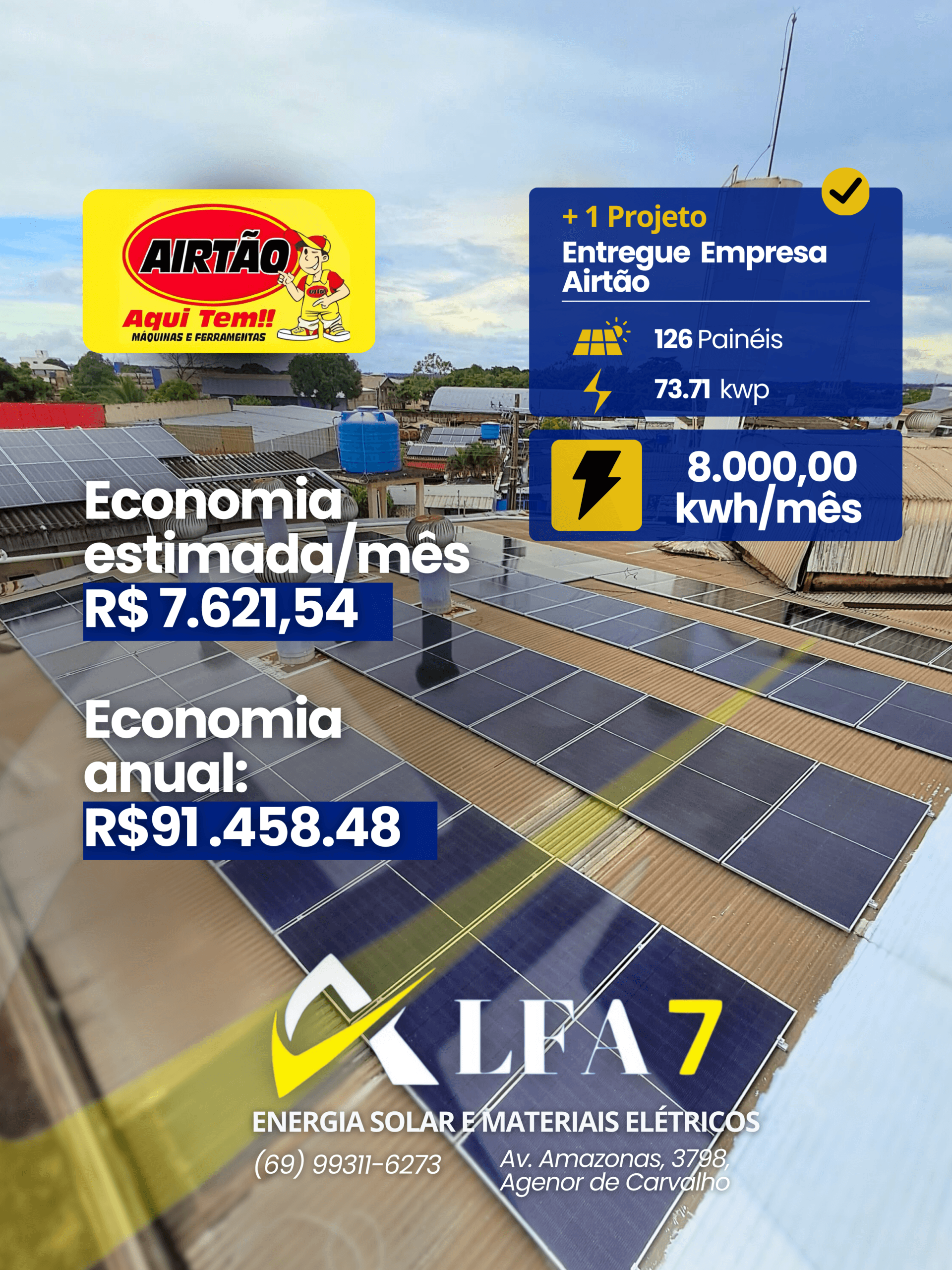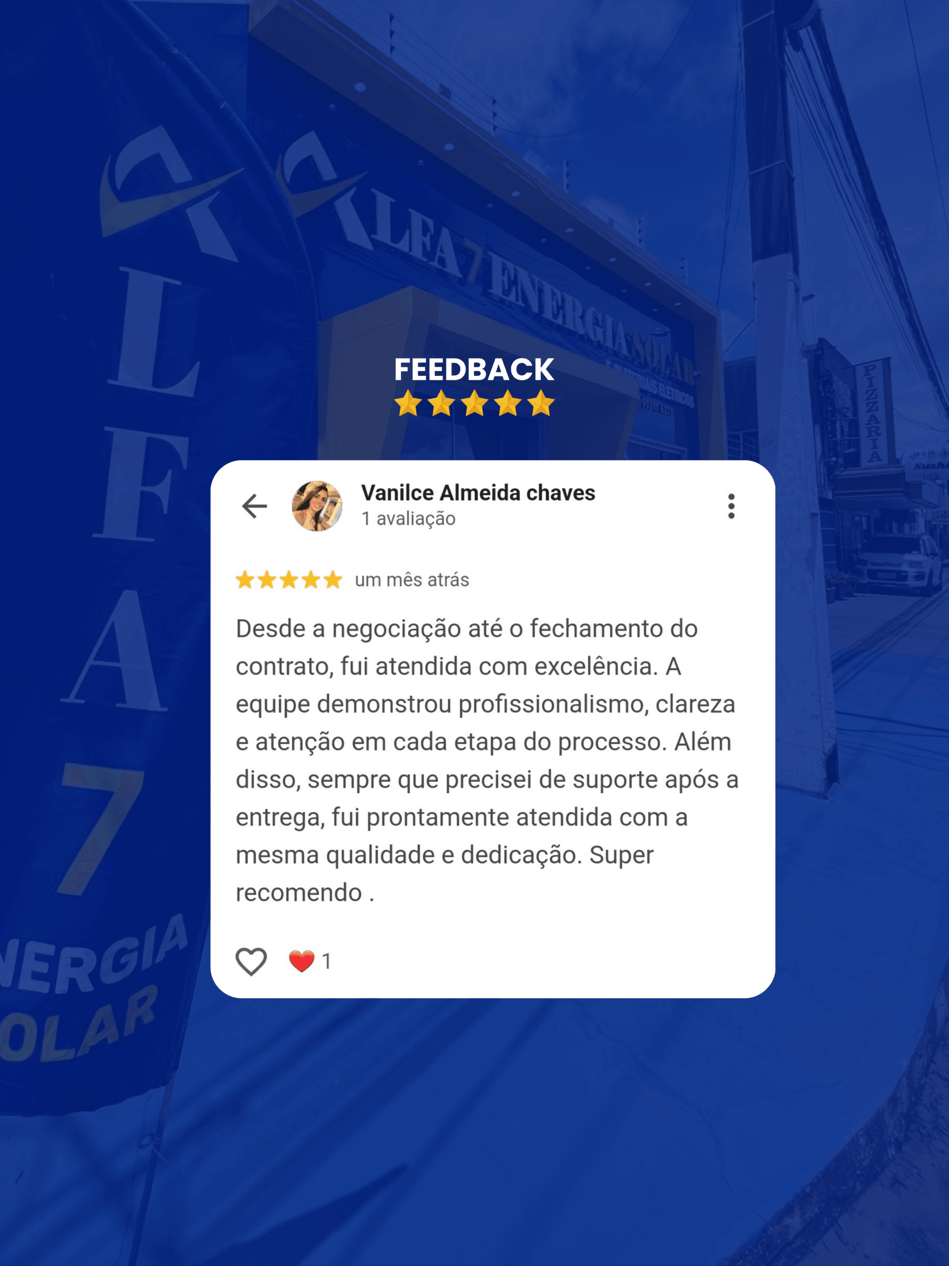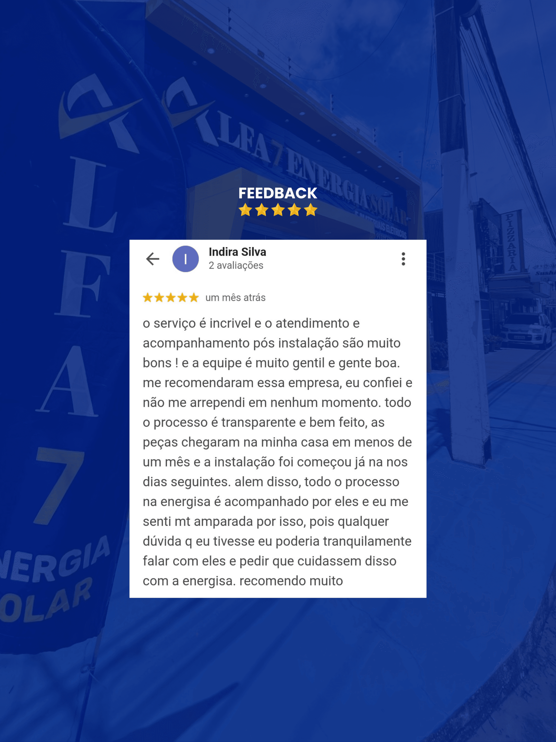 "Minha conta caiu de R$ 780 para menos de R$ 95. Equipe pontual, instalação em 2 dias. Recomendo demais a Alfa7!"